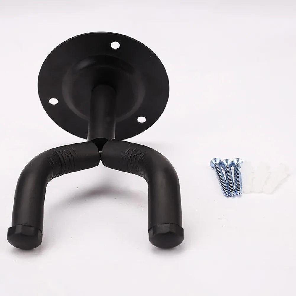 Professional wall-mounted hangar for guitars, basses, and ukuleles. Save space and protect your instrument. The hangar features high quality foam padding for protection. Easy to install with included screws and wall anchors. Measures 15 cm from base to tip.